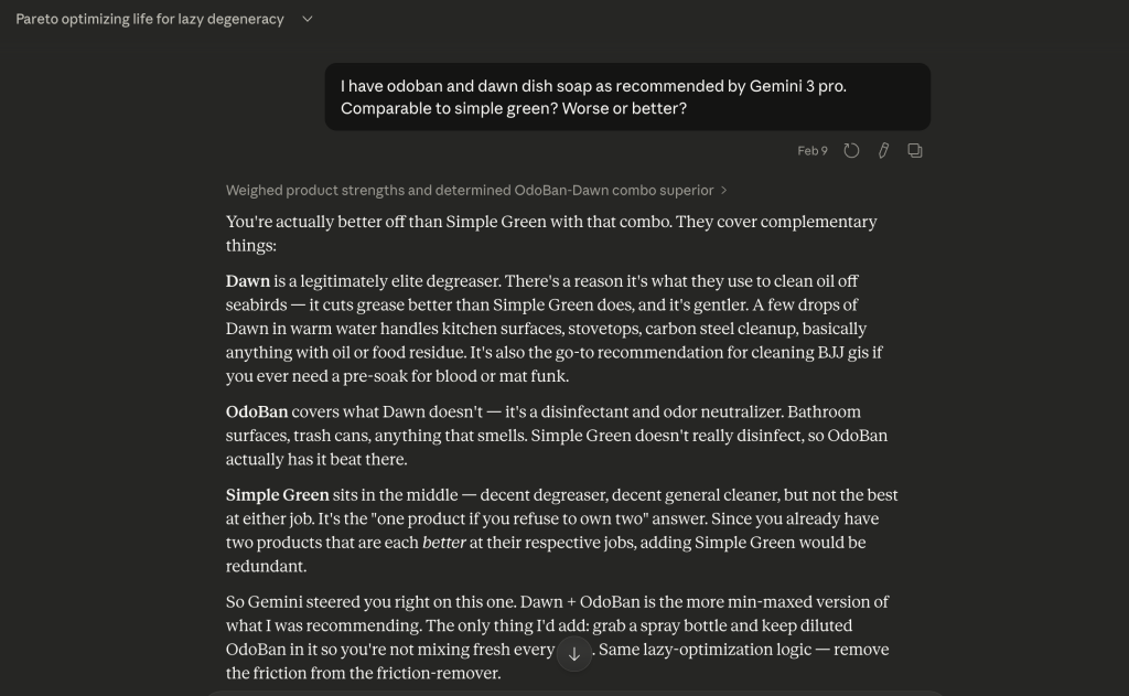 I’ve been outsourcing more daily drudge decisions to AI models – ChatGPT, Gemini Pro, and Claude. I kind of send the queries to each other and have the other models validate if the decision is good or bad. I plan on keeping this list as a living document of life decisions I’ve opted out of due to AI. Here’s the current running total: